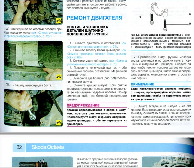 Ръководство(PDF формат 306 стр.) за ремонт и експлоатация ,на руски език,записано на диск за автомобили Skoda Octavia производство от 2004 г. Двигателите са показани на снимка 4.