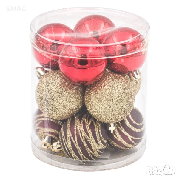Комплект коледни топки в червено, кафяво и шампанско 5 см 12 бр._1198829