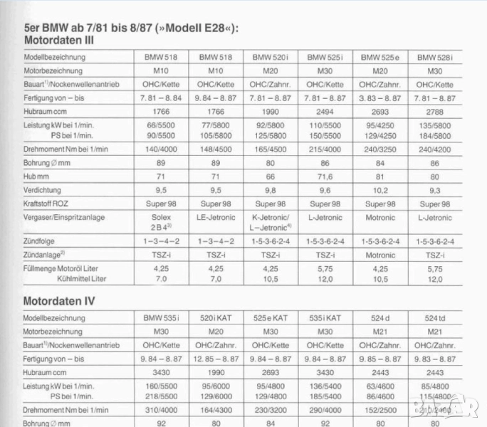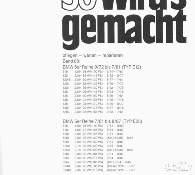 2.BMW-серия 5 /1972-1987/модели Е12 и Е28 с бенз.двигатели 518,518i,520,520i,525,525i,525e,528,528i,535i и дизелови двигатели