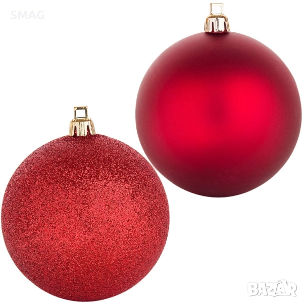 Комплект от 20 червени матови коледни топки с брокат, идеални за украса на елха, гирлянди и празнични композиции. Придават наситен цвят и елегантен празничен блясък на вашата украса. Създават топла и празнична атмосфера във всяко помещение.