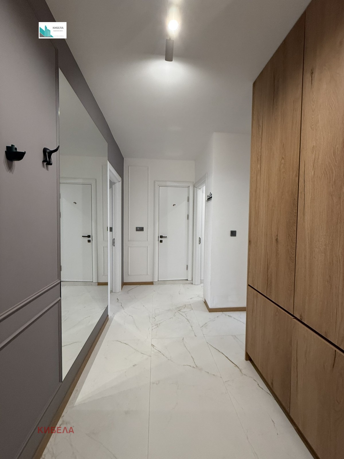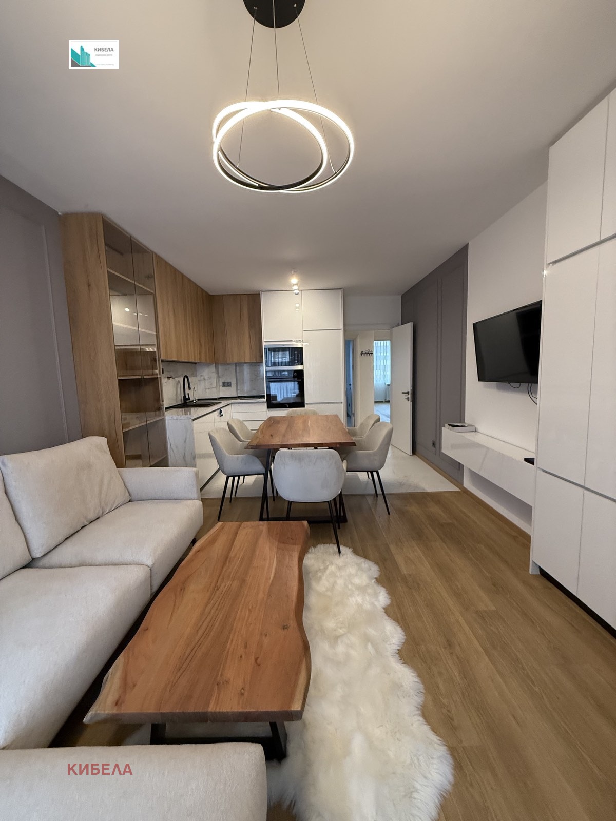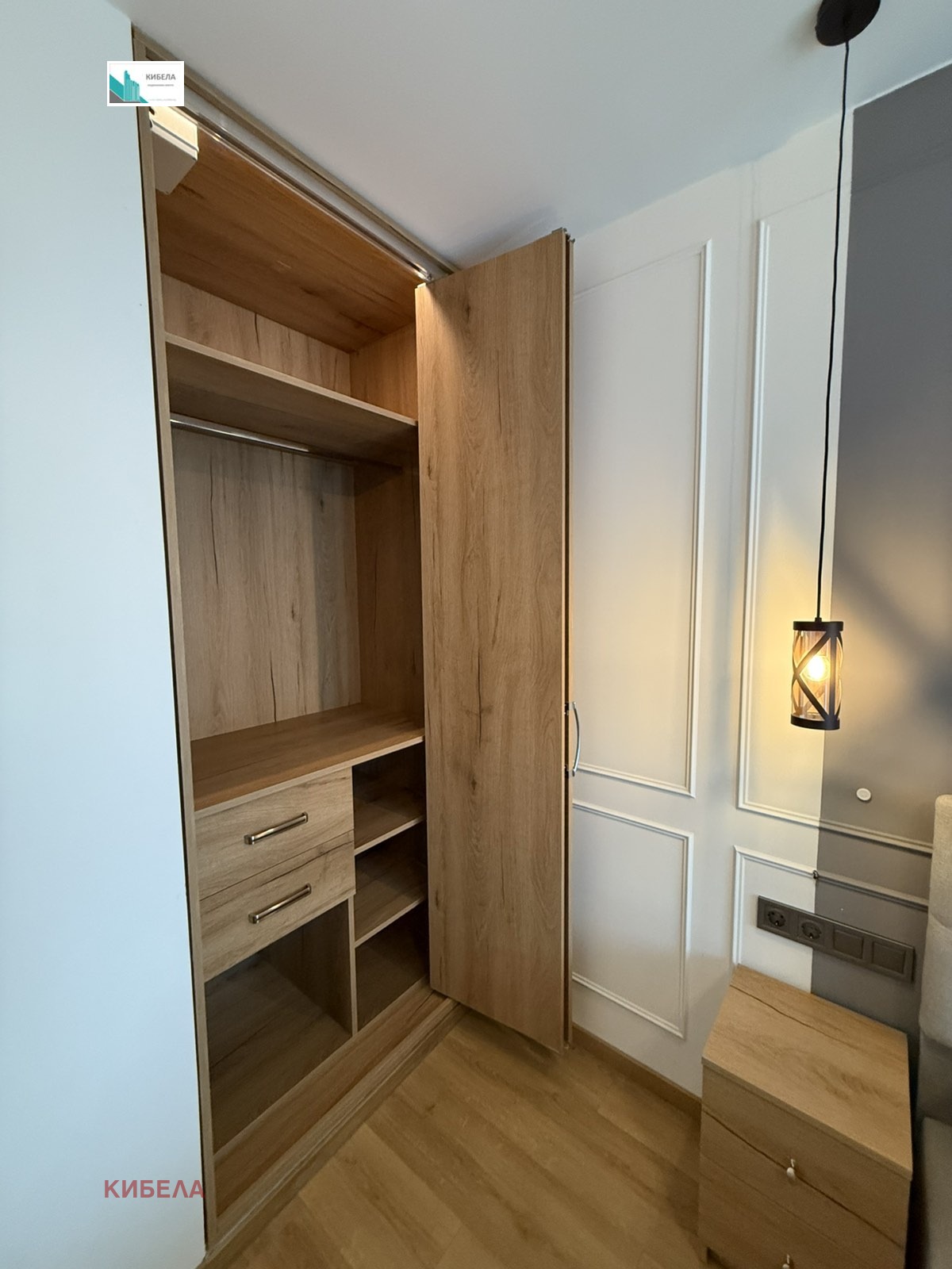 Имотът е обзаведен и оборудван с висок клас мебели и ел. уреди. Застроената площ е 80кв.м., разпределена по следния начин: входно антре, хол с кухненски бокс, две спални, баня с тоалетна, отделна тоалетна и две тераси.