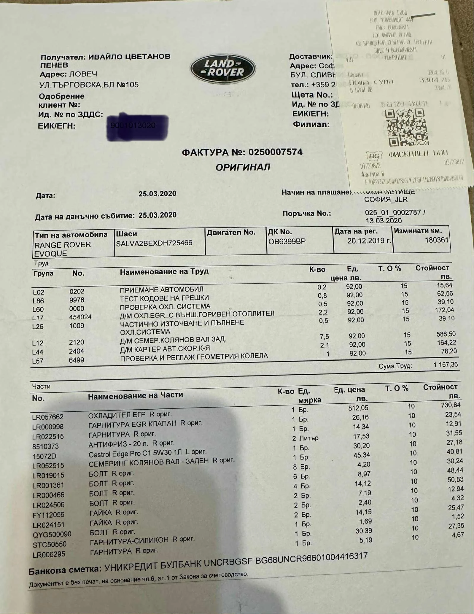 Джипа се кара всеки ден, последно обслужен преди 5 000 км. Закупих го 2019, смених ангренажен комплект, в JLR София беше оставен за пълна профилактика (ще прикача снимка на сменените части) и от тогава досега на тази кола й се сменя редовно масло и филтри и се кара. Кожен салон, Limited edition черно/червен, вечерна амбиентна светлина в 5 цвята, панорама, специалната звукова система Meridian, подгрев на седалки, багажника се отваря сам, автопилот, bluetooth и още. Колата е оборудвана с летни гуми Pirelli Scorpion и зимни гуми Vredestein 19 цола. Перфекта работа на мотора 2. 2 - 190 коня се води за един от най-здравите в серията Range Rover. Сменяни са дискове и накладки и нов акумулатор. Това е по колата, леки интериорни и външни козметични забележки, но нищо прекалено! Нормални за кола 2013 година. Много е важно да знаете, че колата е карана и работи, а не като много модели, които двигателя ги предава! Смяна на масло средно 400-450 лв. 7. 5 на 100 извънградско, 9/100 градско. Колата е с 2 ключа, платен данък за една година напред, винетка за 4 месеца, пастирана на 17 октомври. Колата е гледана и обслужвана и смея да твърдя, че уцелих на автомобил през 2019 когато я закупих. Продава се, само защото купих изненадващо Range Rover Velar.