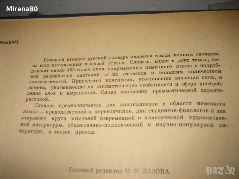 Един речник в 2 огромни тома. Изд. Советская енциклопедия- Москва, 1962 г.. Съставители - Колектив. Твърди корици, 760 + 680 стр. Съдържа над 165 000 думи ! И двата тома са неизползвани, но единият има незначително износване на ъгълчето на кожената корица - вижда се само отстрани.