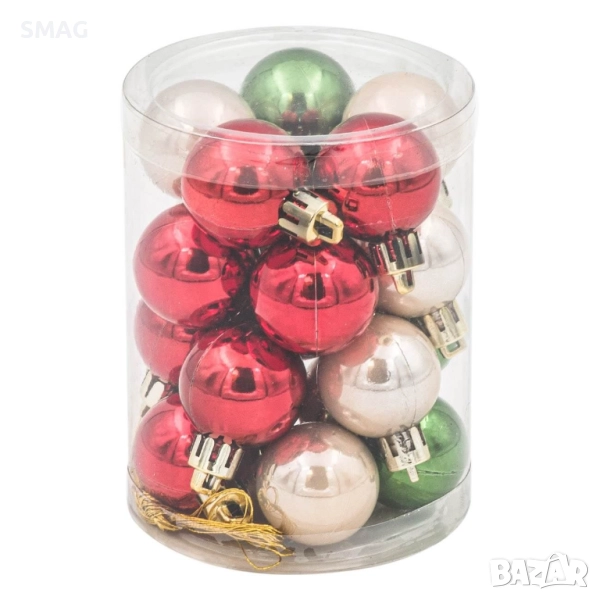 Коледни топки в червен, бежов и зелен цвят придават празничен и елегантен вид на елхата. Подходящи за комбиниране с различни орнаменти и за създаване на цветна коледна украса у дома. Идеални за всякакви празнични композиции.