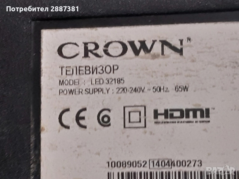 Crown LED32185 със счупен дисплей