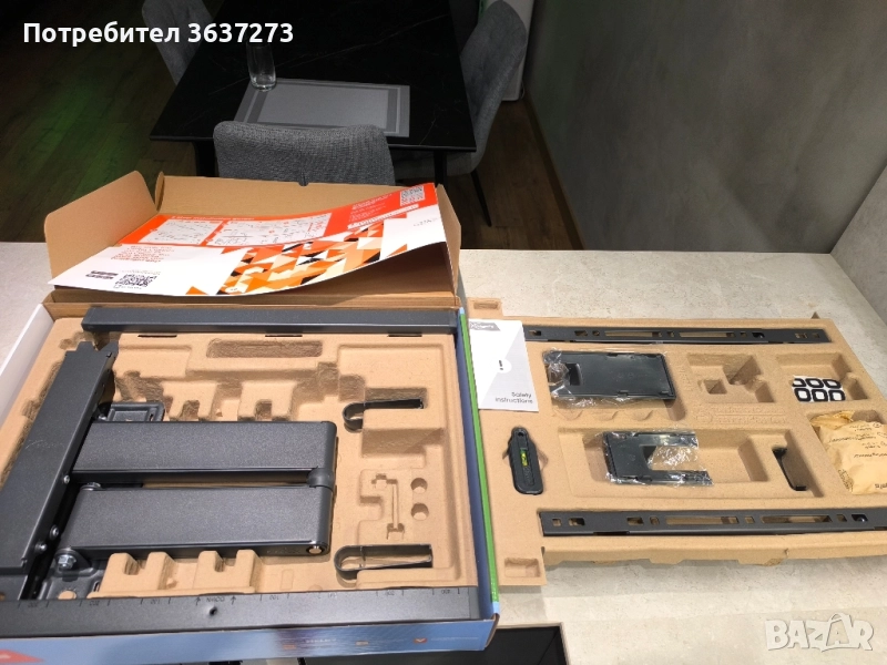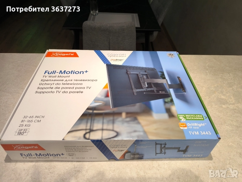 TVM 3443, в черен цвят, за ТВ до 65 инча и 25 кг. Чисто нова, само отворена и разопакована. Не е използвана и/или монтирана. Цена в магазина - 380 лева.