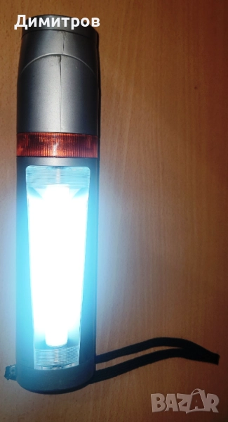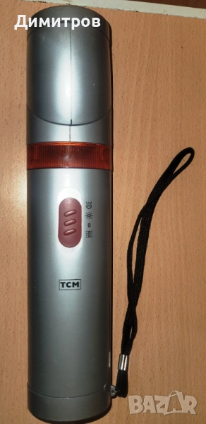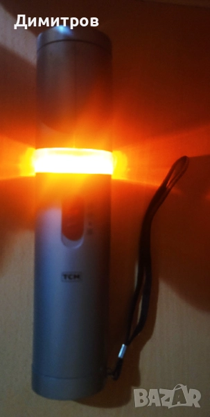 Фенера TCM е с 3 режима на светене произведено в Германия с високо качество свети като прожектор, като аварийна светлина мигаща и като луминесцентна лампа 4 вата, като главата на прожектора може да се върти тялото има и магнит за поставяне вьрху желязо, работи с четири батерии тип АА 1.5V