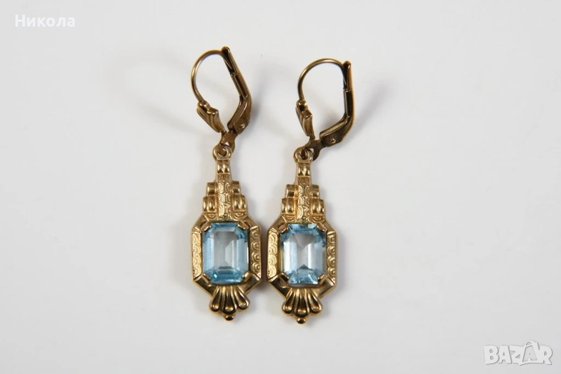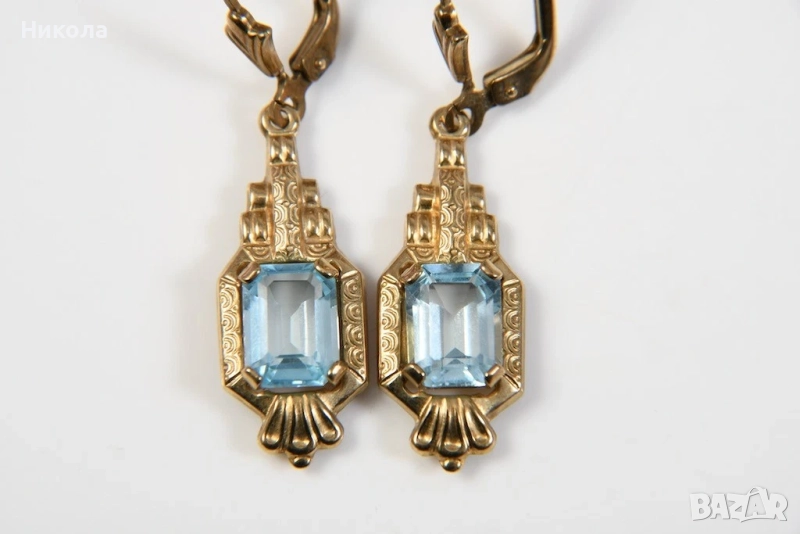 Арт деко обеци - 8к .333 и топаз → Обява 52355341