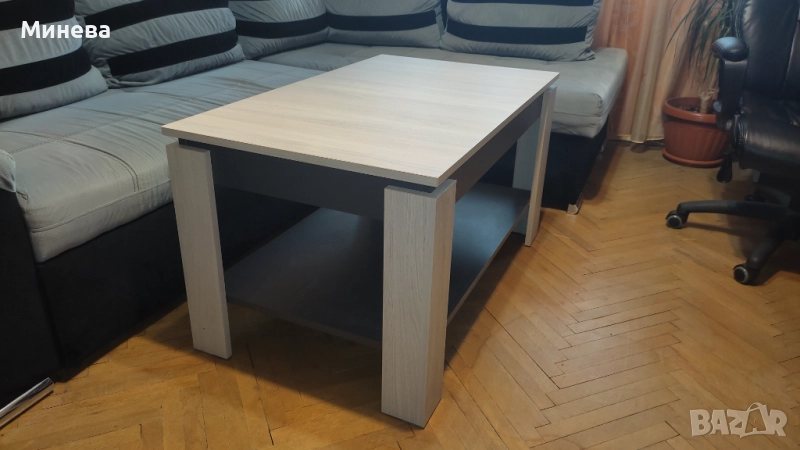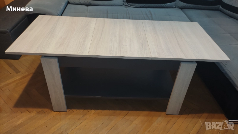 Разтегателна нова дървена холна маса в бежово със сиво, с размери дължина- 100 см.,широчина 60 см. и височина 56