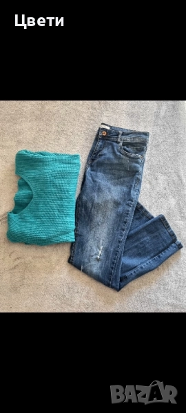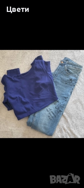 Размерите на блузите са S и М. Дънките са също размери S и М и са доста еластични
