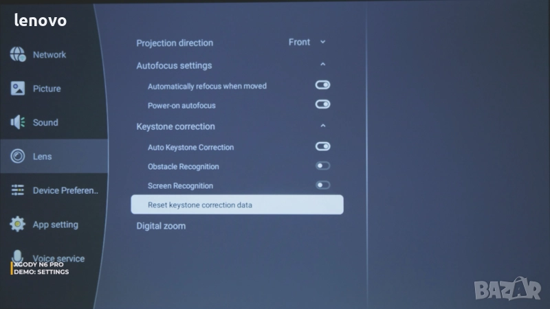 Автоматичен фокус и корекция на трапецовидното изкривяване
