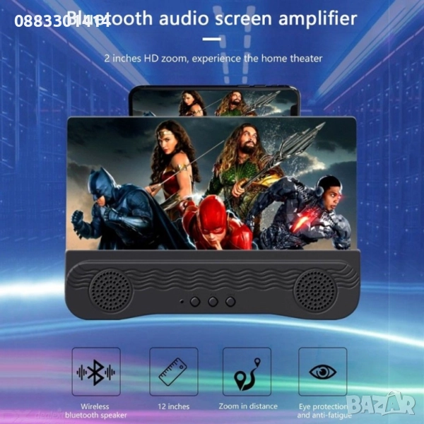 Сгъваем увеличителен екран за телефони 12" с безжична колона K8