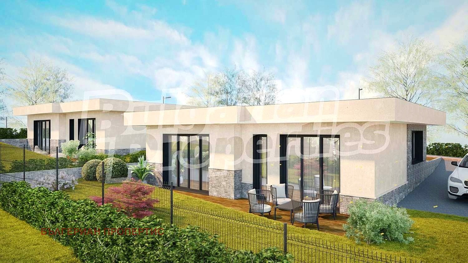 Предлагаме за продажба нова едноетажна къща с акт 15, разположена в село Черни връх, само на кратко разстояние от град Бургас. Имотът е с обща застроена площ от 130 кв.м и предлага съвременно архитектурно решение, съчетаващо комфорт, светлина и функционалност.