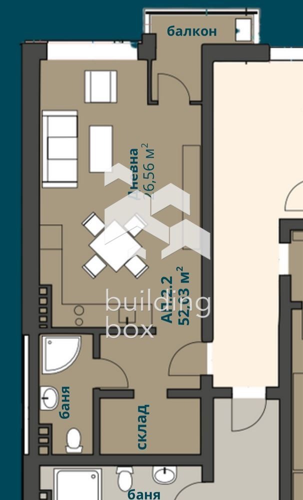 Имотът е с много добро разпределение, със застроена площ от 52,03 кв.м.