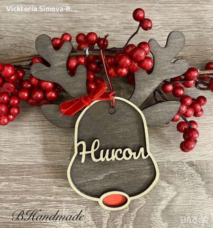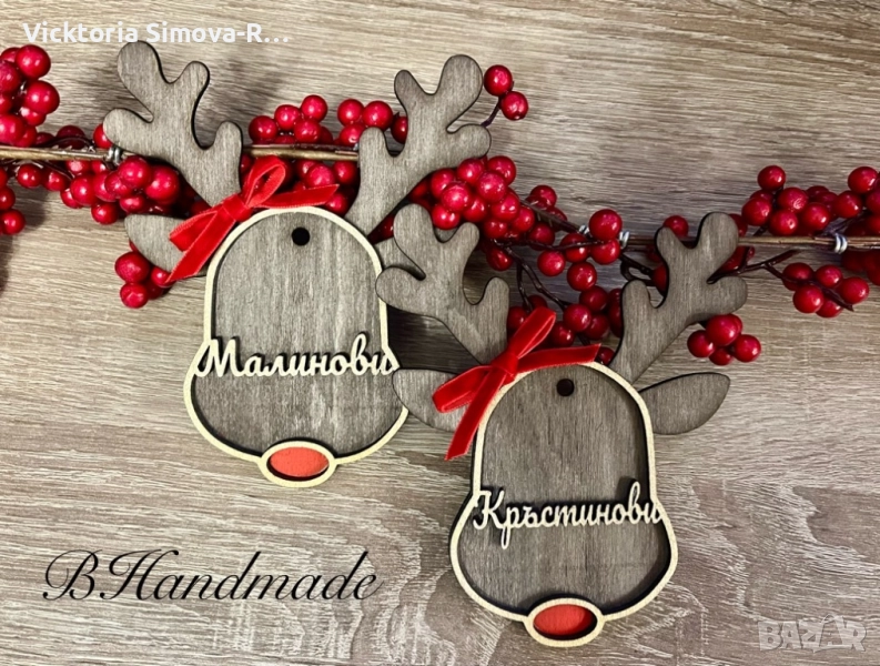 Персонализирани, ръчно рисувани, дървени, коледни орнаменти за елха