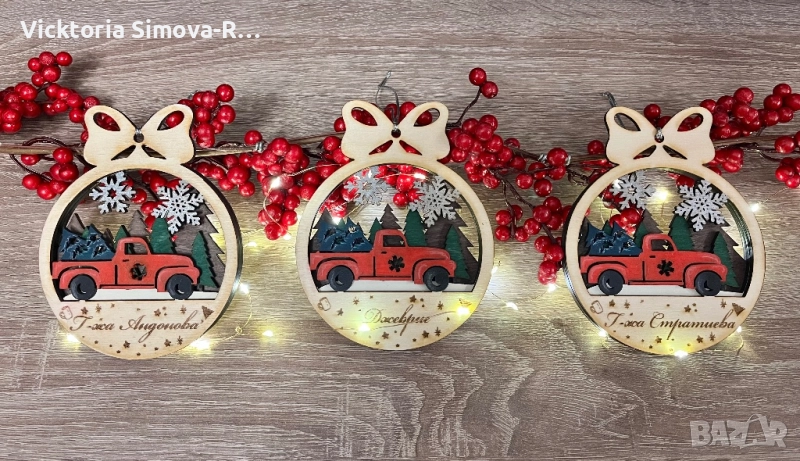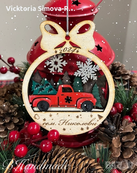 3)ЗД коледна играчка с персонализиран надпис отпред (с камионче или еленче) - 12лв. за брой