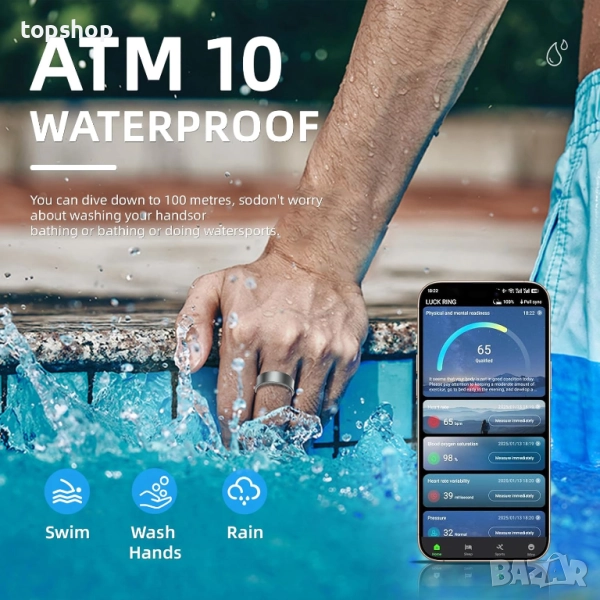 ЗАБЕЛЕЖИТЕЛЕН ДИЗАЙН: Този здравен пръстен е създаден за вашето ежедневие - вдлъбнатият дизайн минимизира драскотините за изключителна издръжливост; Без да докосвате телефона, можете да разклатите пръстена, за да направите снимка и лесно да заснемете всеки прекрасен момент; Освен това, пръстенът не се страхува от пръски - той е водоустойчив до 10 ATM.