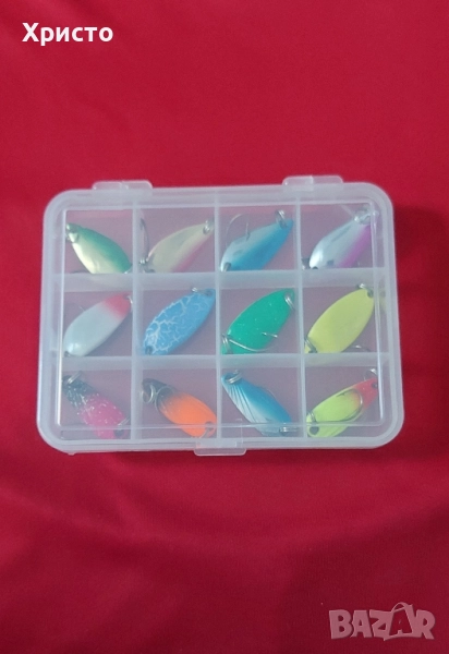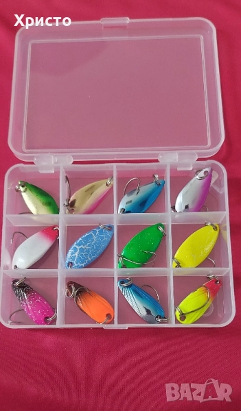 Нови примамки за спининг риболов 12бр с кутията, клатушки, блесни, воблери , снимка 1 - Въдици - 52360003 Нови примамки за спининг риболов 12бр с кутията, клатушки, блесни, воблери , снимка 2 - Въдици - 52360003 Нови примамки за спининг риболов 12бр с кутията, клатушки, блесни, воблери , снимка 3 - Въдици - 52360003 1/3