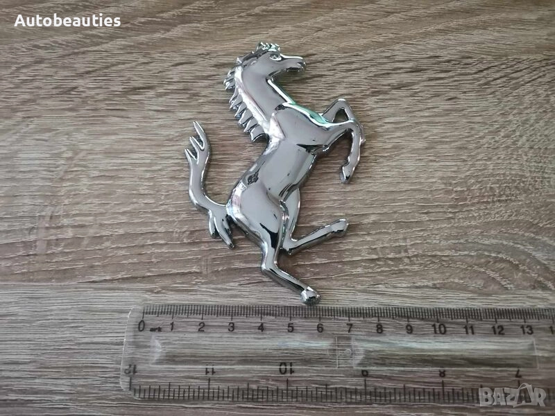 Нова дясна емблема Prancing Horse в сребристо за Ferrari. Размерите са дадени на снимките.