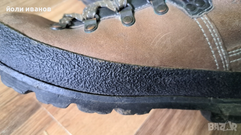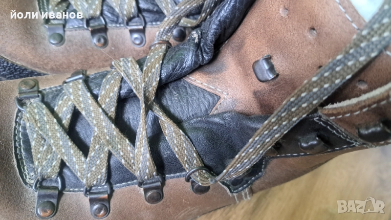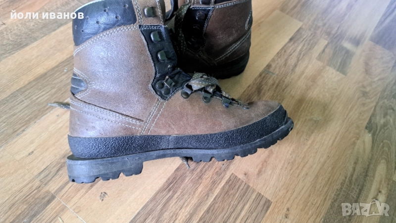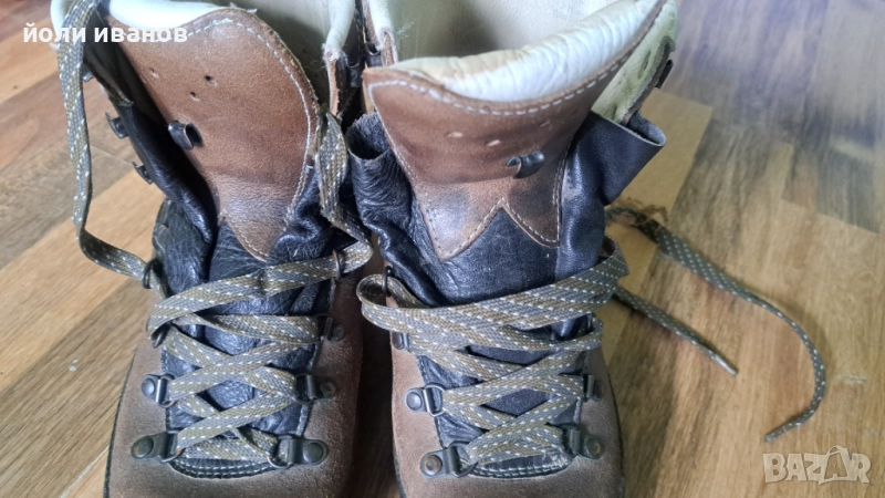 Кожени туристически обувки,много здрави като подметка ,дебел гумен борд,кожени отвътре с подплата между двата слоя кожа,ретро модел,имат жлебове за котки,строго туристически,дори алпийски обувки,39 номер,унисекс