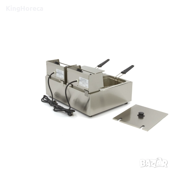 Този компактен, но изключително ефективен електрически фритюрник с две независими вани (2 x 6 л) е създаден за интензивна ежедневна употреба. Със своите отлични технически характеристики и стабилна конструкция от неръждаема стомана, той е сигурен партньор във всяка професионална кухня.