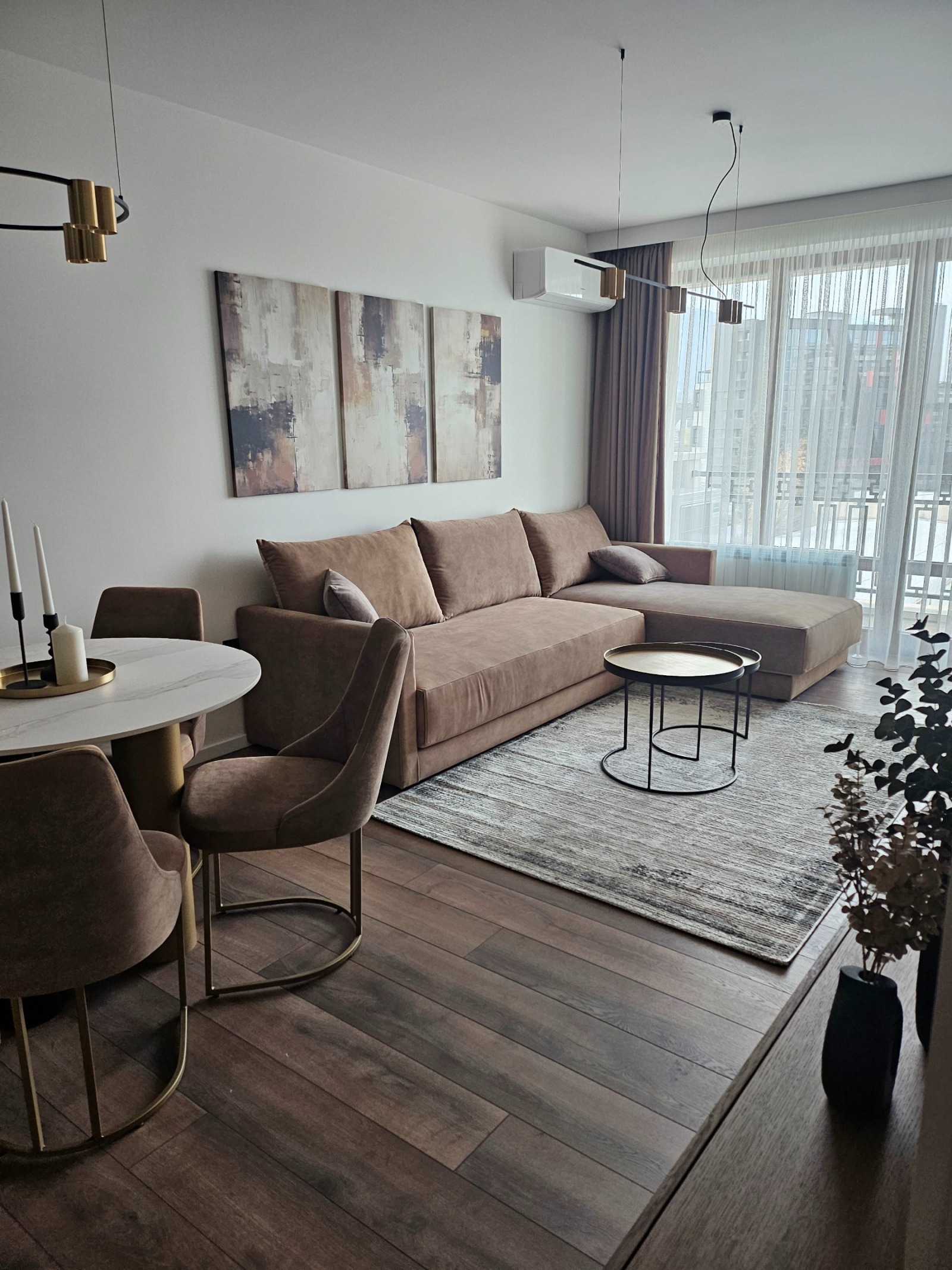 'Имограф' недвижими имоти предлага двустаен апартамент под наем в изключителния комплекс 'Paradaise Place'. Разположен на четвърти етаж, този апартамент ще Ви спечели със своя лукс, функционалност, светлина и пространство, както и с прекрасна гледка към Витоша. В комплекса има фитнес и басейн на разположение на живущите, както и спокоен тих вътрешен двор. Имотът е напълно обзаведен и оборудван с всички необходими мебели, и уреди. Елегантен и много уютен, той се състои от: антре, дневна с трапезария и кухн.бокс, баня с тоалетна, мокро помещение, спалня, балкон. Изключителна сграда с отлични общи части. Със своето висококачествено строителство и енергийна ефективност клас 'А', комплексът предлага 24-часова охрана, впечатляваща рецепция и отлична локация, в близост до метростанция 'Витоша' и Paradise Center. При желание може да се наеме паркомясто за 180 Евро.