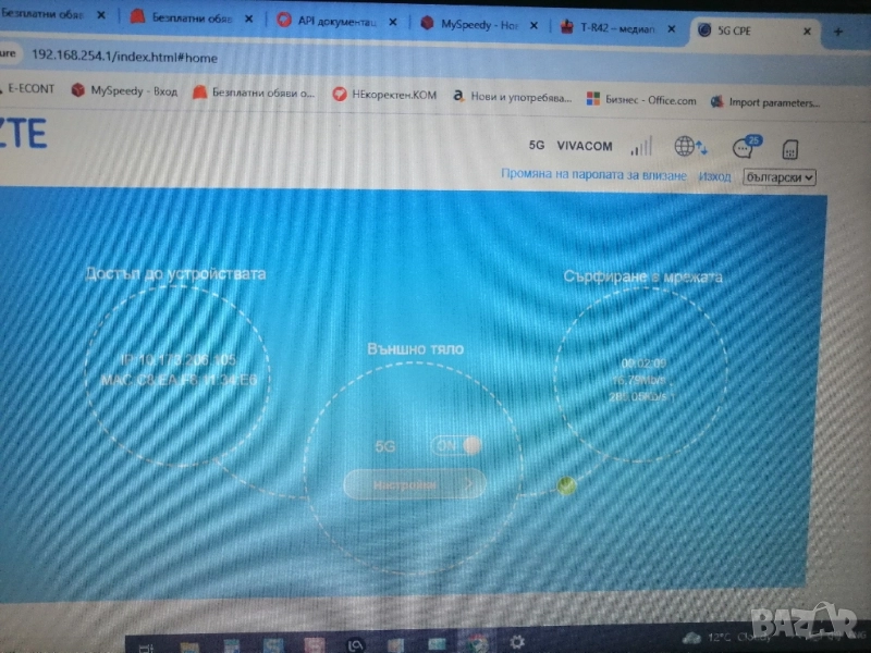 ZTE MC7010 5G външен рутер и ZTE MF269 Wi-Fi вътрешен рутер.