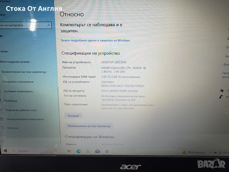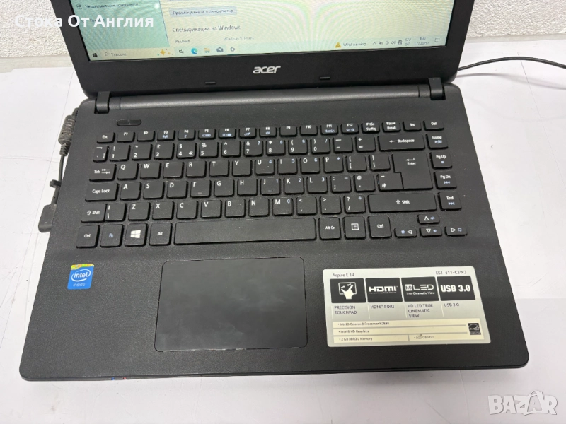 Лаптоп - Acer ES1-411 , Intel Celeron N2840, RAМ 2GB DDR3, HDD 512GB, OS: Windows 10 Home/ L3