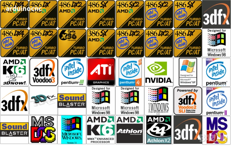 Ретро емблеми за компютърни кутии – 8088, 286, 386, 486, Pentium, K6, Voodoo, Sound Blaster