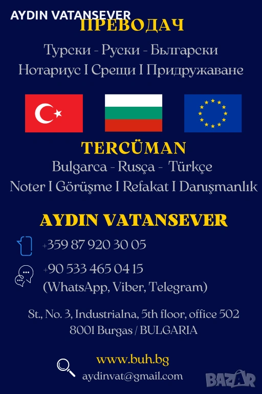 ПРЕВОДАЧ БУРГАС - ТУРСКИ, РУСКИ, БЪЛГАРСКИ 🔥