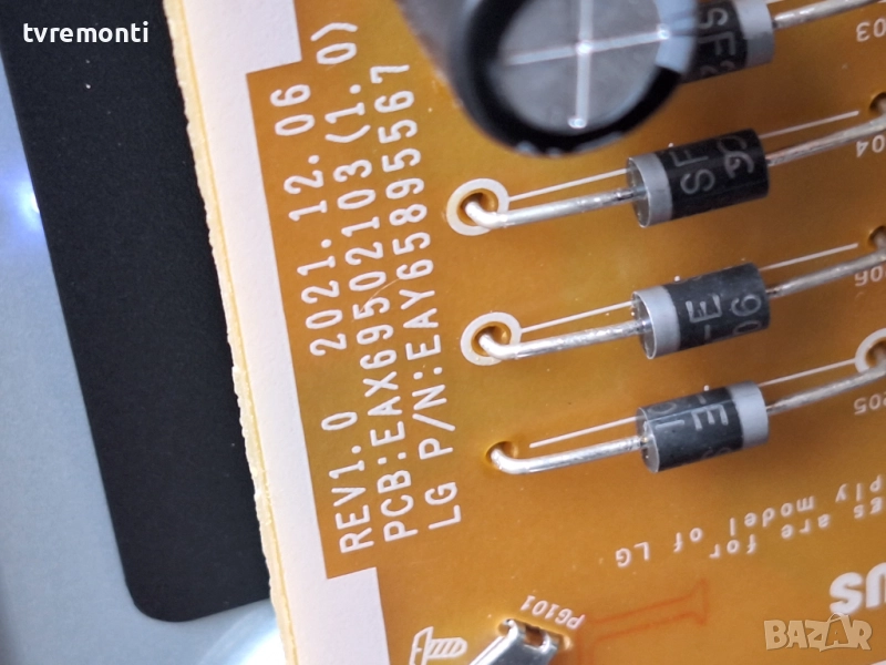 POWER BOARD ,EAX69502103(1.0),EAY65895567,LGP43NT-21U1 ,.за 43-инчов телевизор LG Модел 43UR781C0LK, с дисплей HC430DQG-ABHA3-A145 Платката е използвана, но гарантирано работеща, демонтирана от телевизор със счупен дисплей. Тествана е от нашия техник.