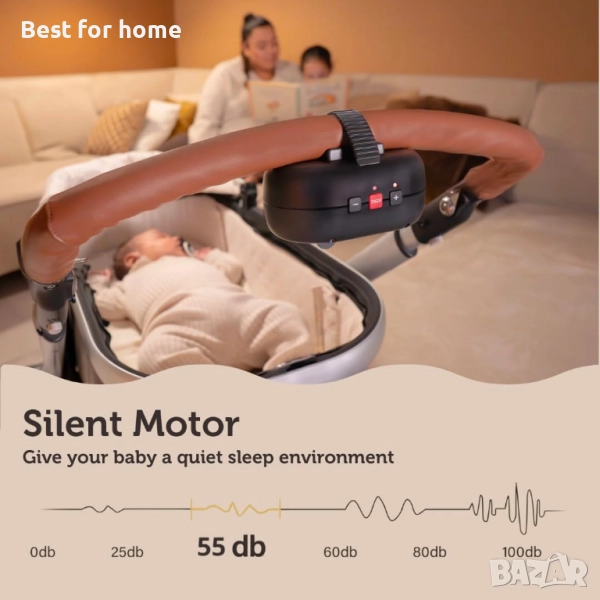 РЕАКТИВЕН СЕНЗОР ЗА ВИНО: Оборудван с интелигентен сензор за вино, Robby започва да се люлее автоматично, когато бебето ви плаче и осигурява незабавен комфорт, задължително за новите родители.