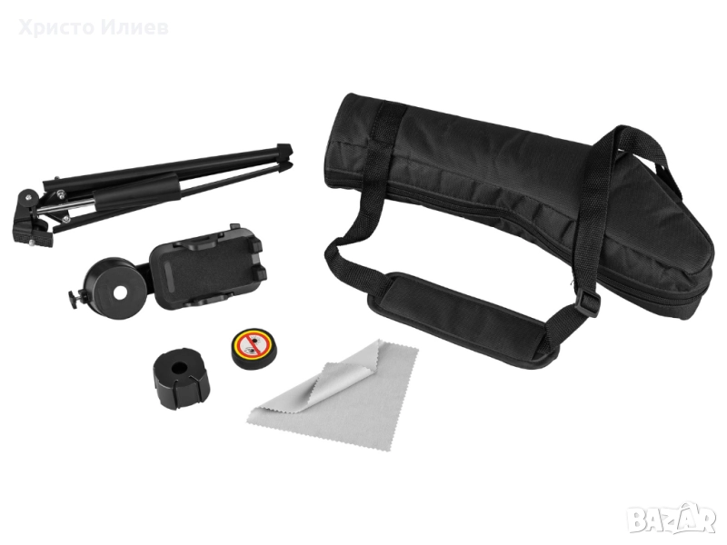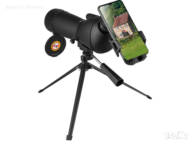 С поставка за смартфон при окуляра като монитор на живо, за фотографиране или заснемане на видео