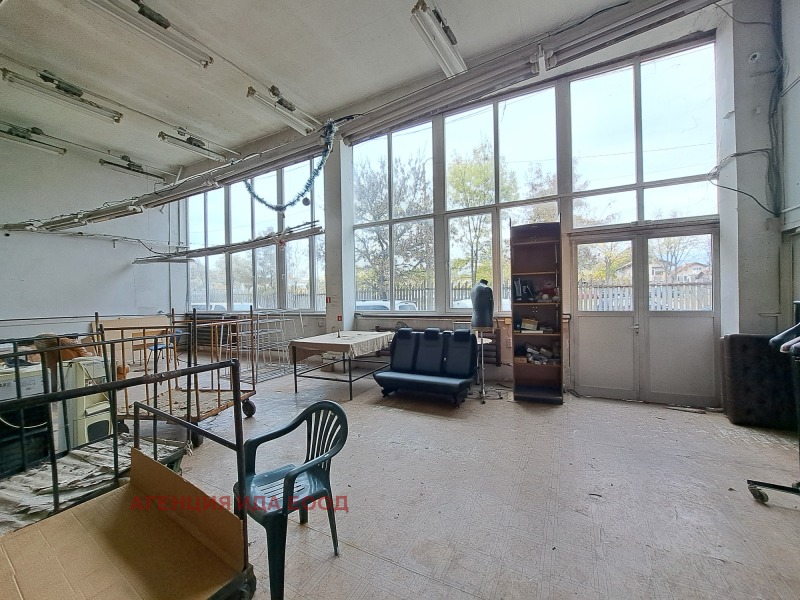 Двуетажна сграда, с тавани над 4 метра. PVC дограма. Големи, просторни зали, светли с много прозорци, офисна част, санитарни помещения, съблекални, складове. Сградата е на два етажа, свързани с широка стълба. Възможност за поставяне на асансьори. Трифазен ток с голям капацитет. Изрядни документи. Застроената площ на всеки етаж е 548кв.м./статут на сграда промишлена/. Площ на имота 1182кв.м./статут- за друг вид производство, складов обект/