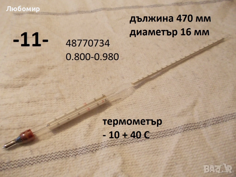 11. Ареометър 0.800 - 0.980 с термометър GDR - ново - 26 лв.