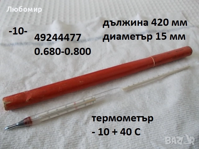 10. Ареометър 0.680 - 0.800 с термометър GDR - ново - 26 лв.