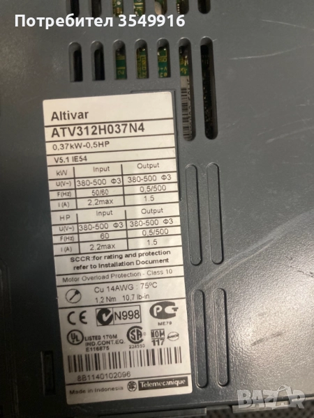 Честотен регулатор(инвертор) Altivar 12 0.37кw 200V AC → Обява 52363753