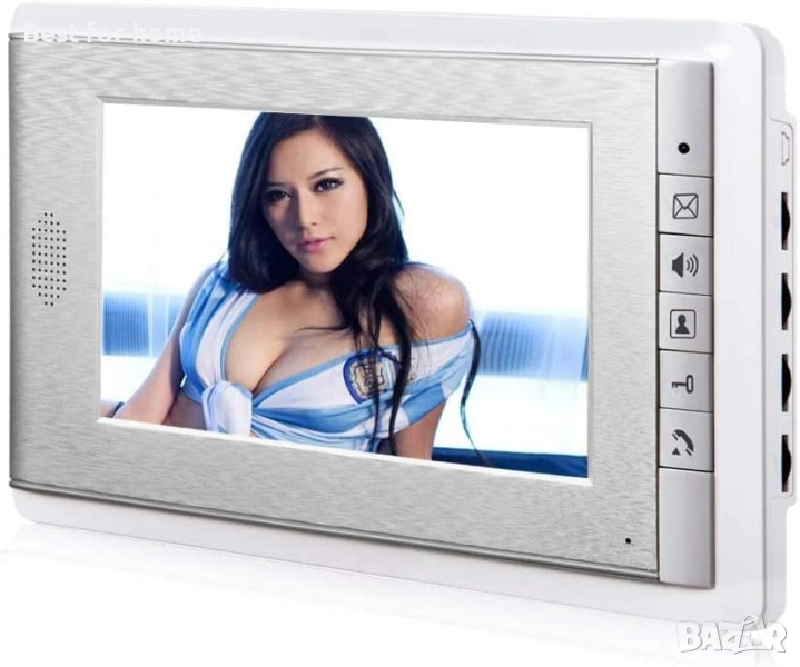 7-инчов LCD екран, отговаряне на вратата, наблюдение и отключване, двупосочен домофон, 16 различни вида звънци на вратата. Силата на звука, яркостта и контрастът са регулируеми.