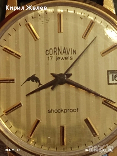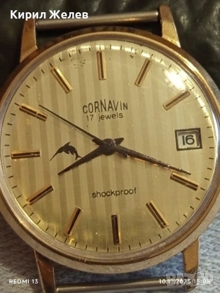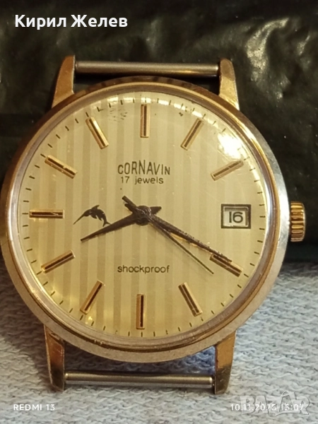 Стар механичен часовник мъжки CORNAVIN работи позлатен перфектен 37524