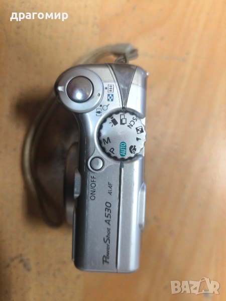 продавам компактен цифров фотоапарат, работи,с калъф и карта памет, Canon PowerShot A 530, работи с две батерии АА по 1, 5 v, имам още много други фотоапарати, камери, обективи, чанти, светкавици, батерии, зарядни устройства, касети, филтри, ремъци, ленти, при закупуване на повече неща отстъпка