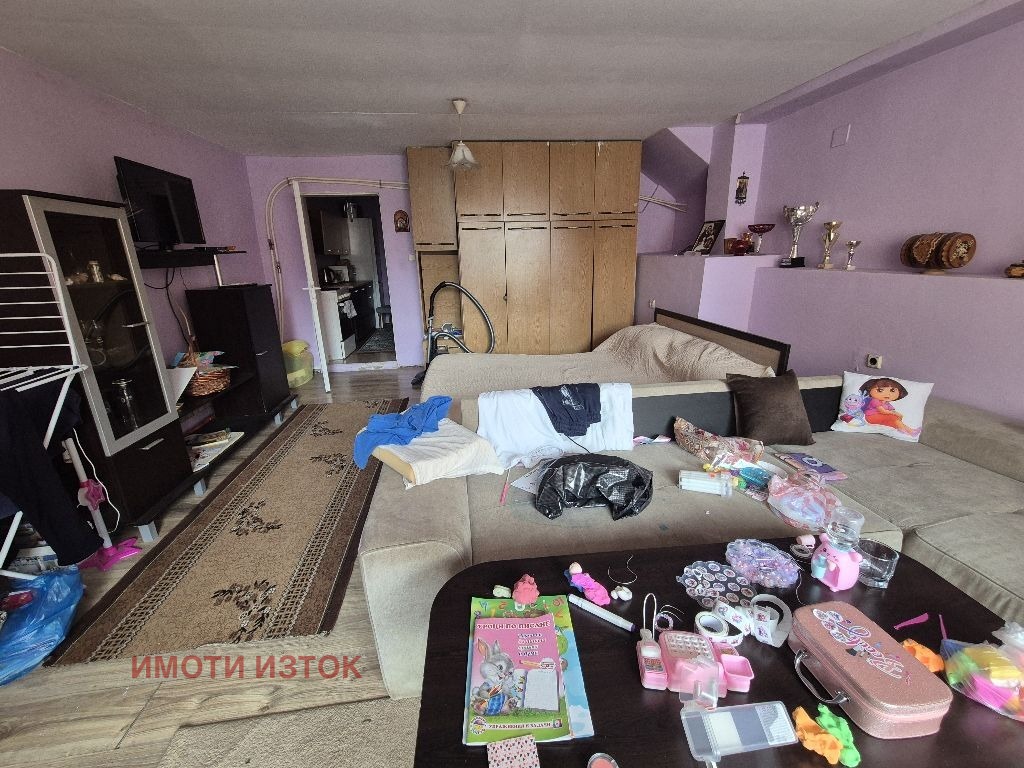 Продава се самостоятелна къща на два етажа. На първи етаж има кухня с всекидневна, баня с тоалетна, още една всекидневна с баня и тоалетна. На втори етаж са разположени хол и две спални.