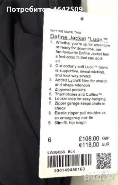 Оригинално Дамско Спортно Яке Lululemon Define Luon Jacket → Обява 52365196