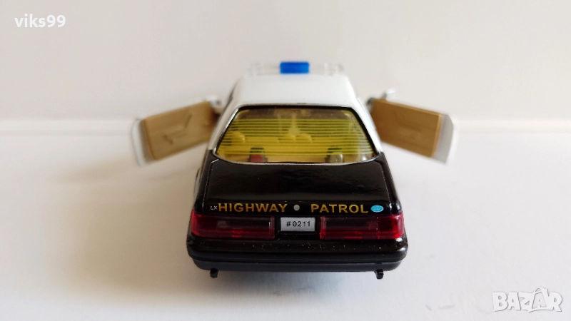 Метална количка с отварящи се врати FORD Mustang California Highway Patrol 1991 AmerCom - Мащаб 1:43 - 13 EURO