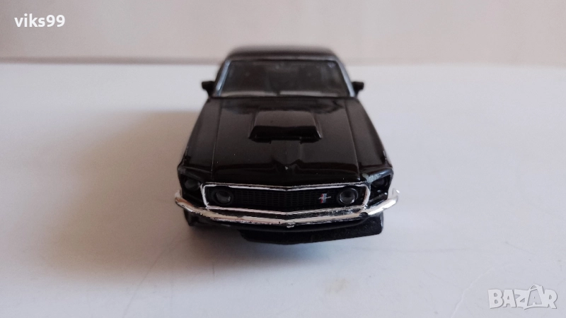 Метална количка с отварящи се врати и Pull back механизъм 1969 Ford Mustang Boss 429 (black) Welly 43713 - Мащаб 1:34-39 - 10 EURO