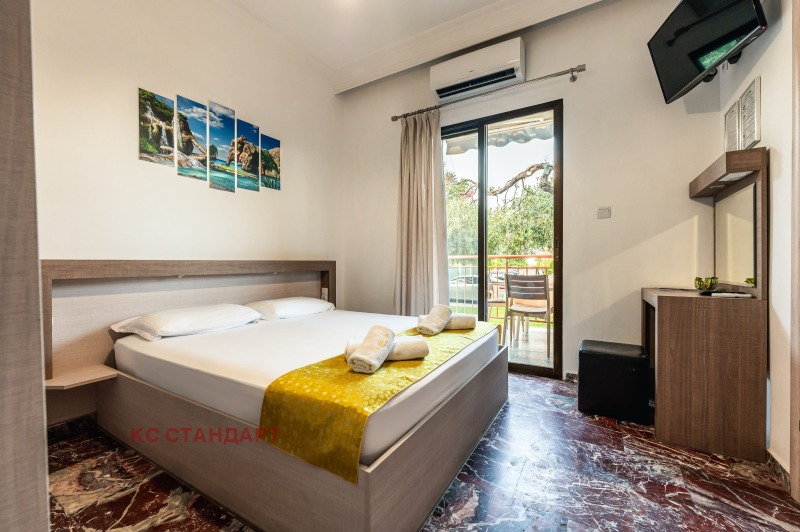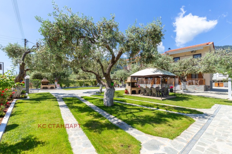 КС Стандарт има удоволствието да ви представи за продажба работещ, изцяло реновиран през 2021 година семеен хотел разположен в намиращият се на източния бряг на остров Тасос, курорт Кинира на 200 метра от морето. Разполага със 4 студиа, 5 апартамента, самостоятелна къща за собствениците и две каравани.