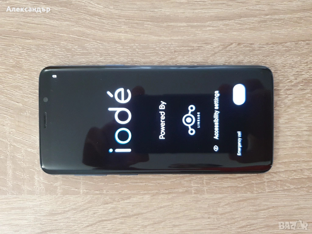 Телефон Samsung Galaxy S9 с iodeOS (патентована и анонимна операционна система; за повече информация вижте уеб сайта iode.tech), базиран на Android 13.