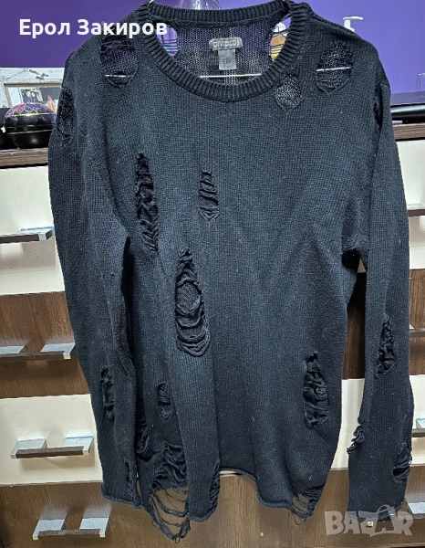 Черна плетена блуза със дупки и кръпки - 20 лв