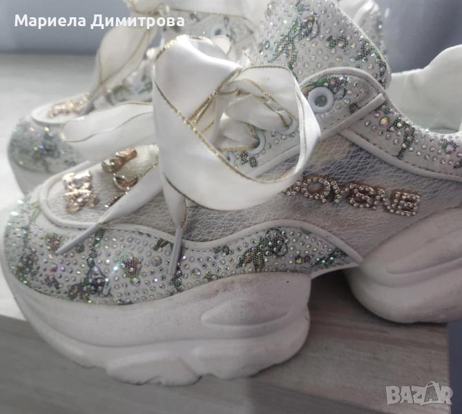 Бели кожени маратонки на платформа → Обява 52366373