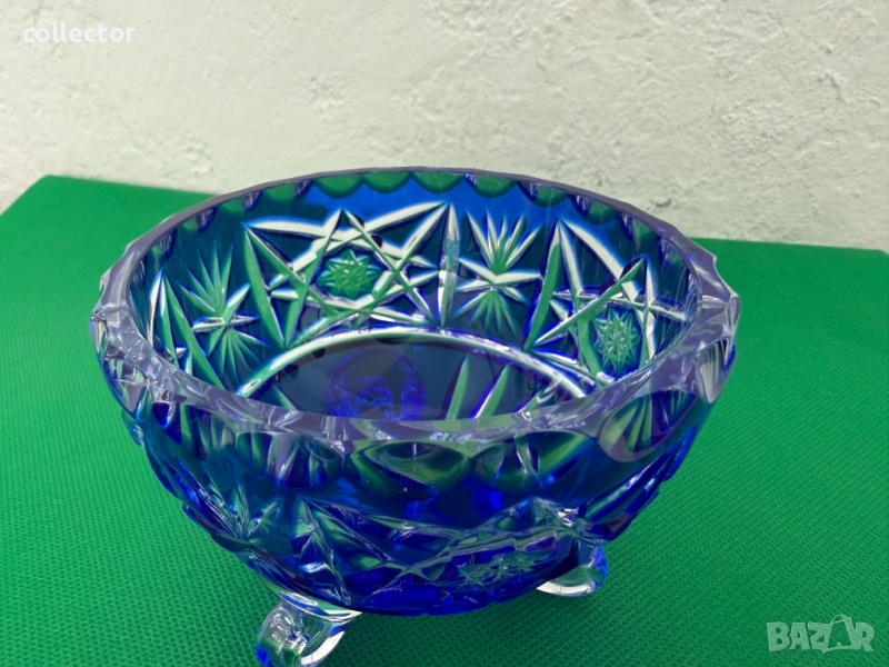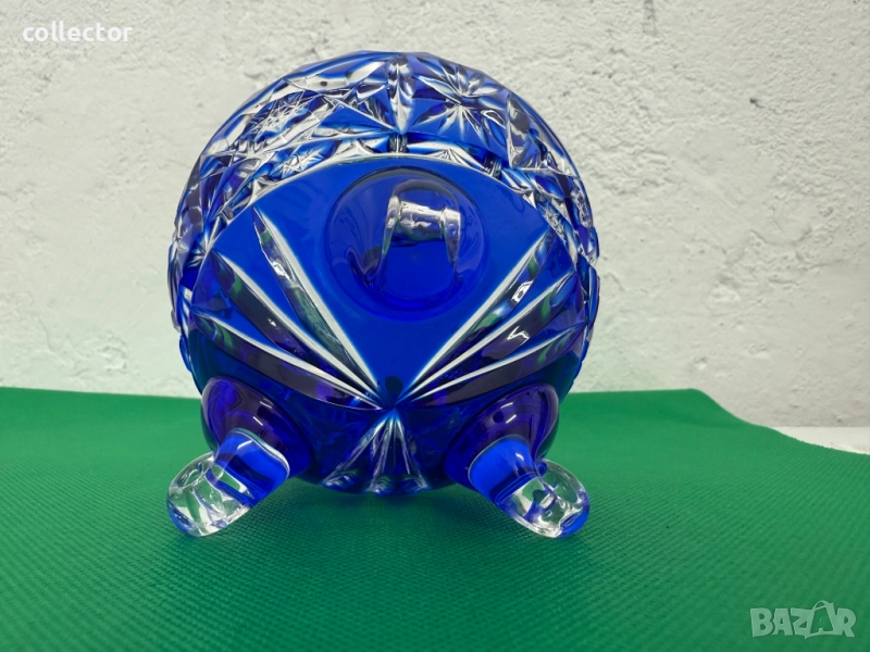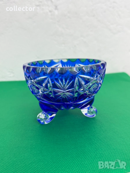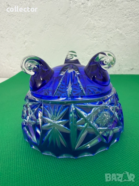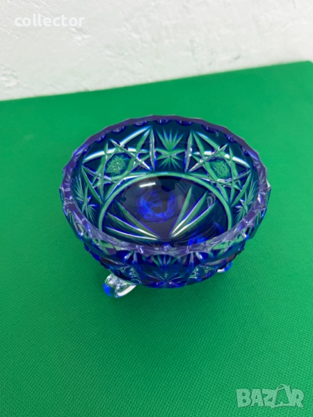 Бохемска (чешка) - захарница с три извити крачета, стилът е известен със своето висококачествено рязано стъкло и наситени цветове, сложни геометрични и звездни мотиви.