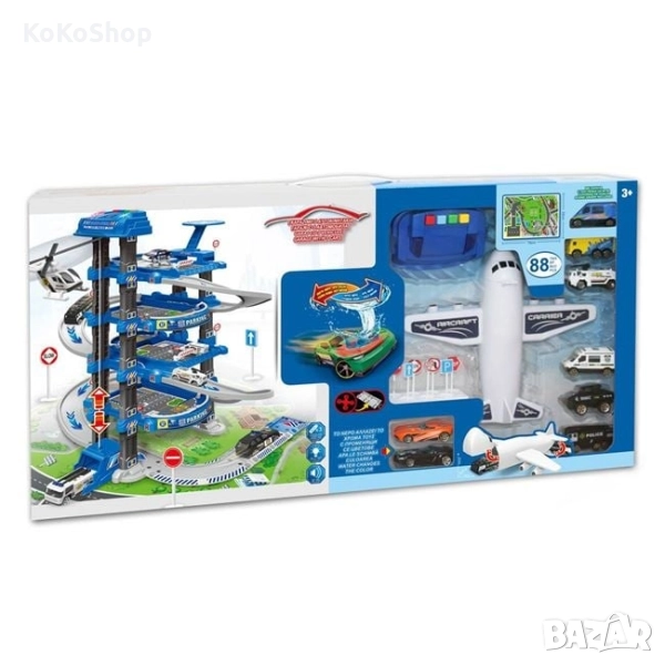 Полицейски комплект гараж с превозни средства,самолет звук-88 части